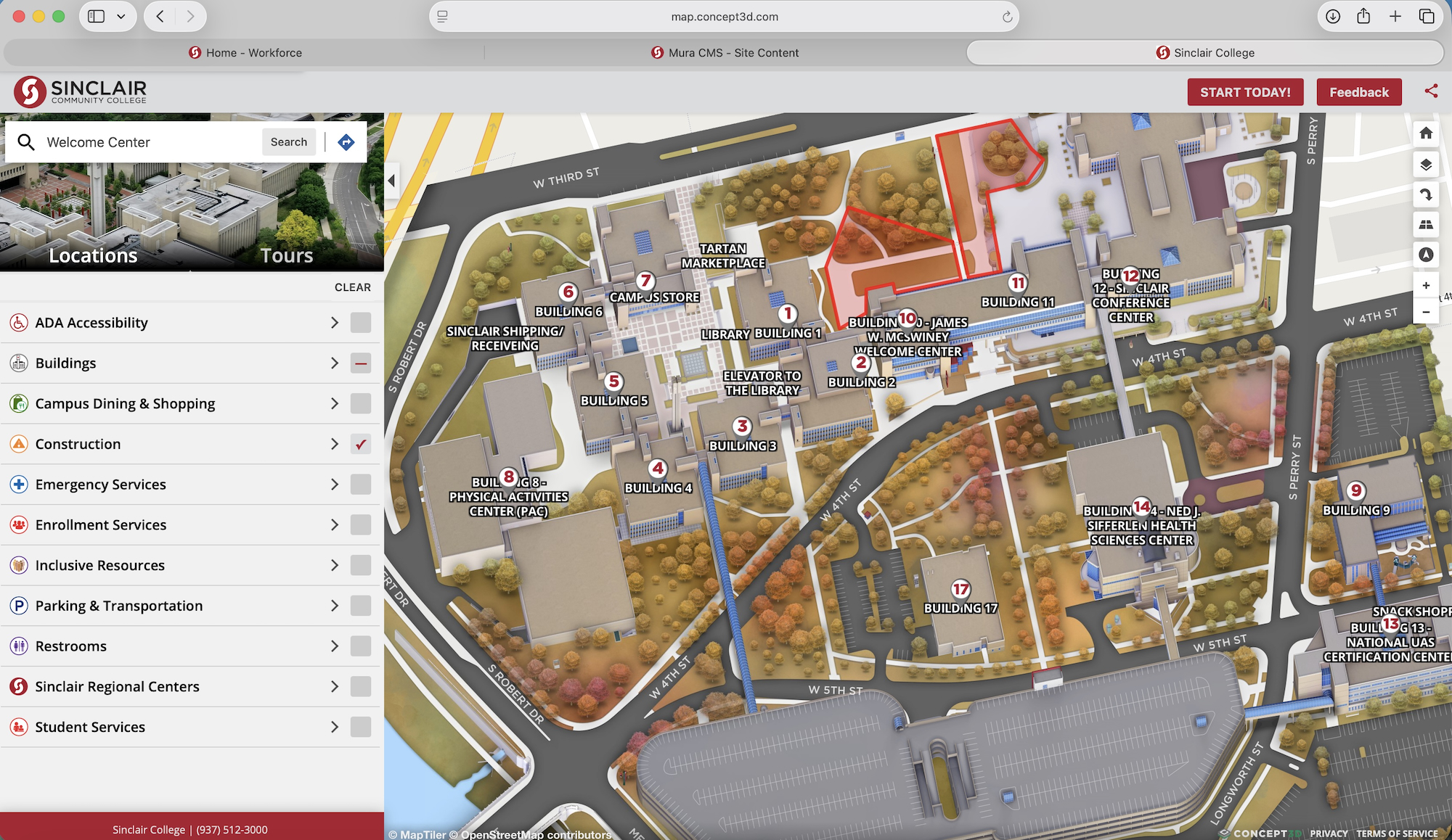 map of Sinclair College. Note: the link will redirect you to the Sinclair College website.